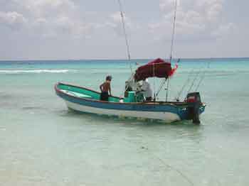 When you go fishing in Playa del Carmen you will be going out with the local fisherman. These fisherman have been in Playa del Carmen since the time it was a fisherman's village and not the multi-cultural tourist town it is today. The price for fishing is $200 for 4 hours includes 2 down riggers, fish finder, bottom fishing, and four fishing rods. Drinks are supplied on the boat, maximum 4 people. The captain assures me that you will catch something. He will also cut the fish and there are a few restaurants in Playa that will charge you 50 pesos ( $6usd) or so to cook them any way you want. During your fishing trip you are welcome to take a break from fishing and do some snorkeling. There is no extra charge for snorkeling, just bring your own snorkeling gear. The cost for 6 hours is $260 and a full day from 7 am to 3 pm is $380.